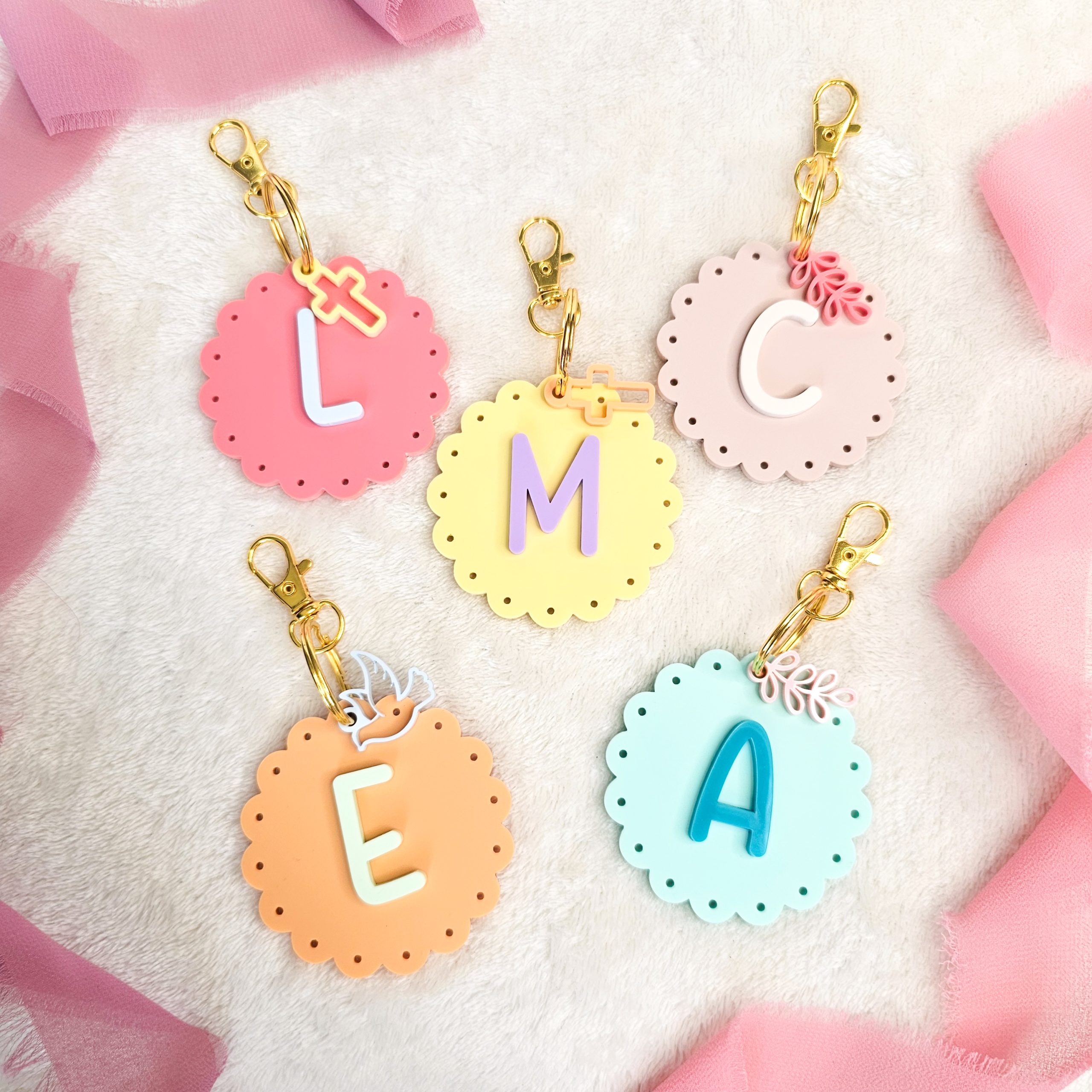 Transforma lo cotidiano en algo extraordinario con este llavero que encanta a todos. Su forma de rosetón y la inicial en relieve lo convierten en una pieza personalizada, perfecta para decorar bolsos, llaves o mochilas con elegancia.