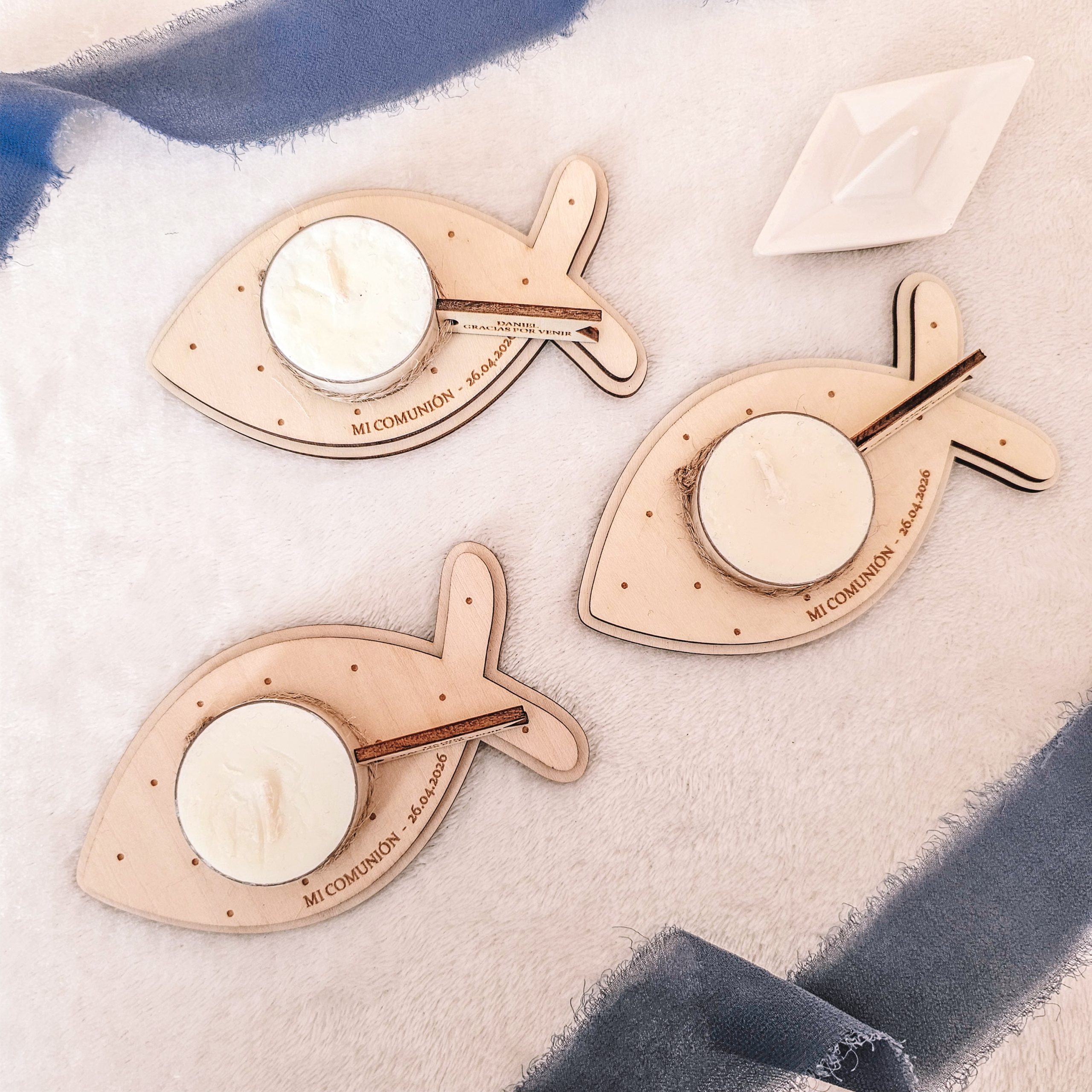 Queremos que tus invitados se lleven un recuerdo tan original como auténtico. Este portavela con forma de pez es una pieza natural y llena de encanto, pensada para iluminar esos momentos compartidos y para que el recuerdo de ese día tan bonito esté siempre presente en sus casas de una forma muy especial.